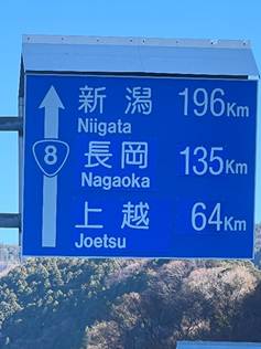 この画像は、新潟県と富山県の県境付近にある青看板です。糸魚川市から新潟市まで196kmの距離を示しています。この奥の村上市まで新潟市から70km離れているので改めて新潟県の長さを実感することができました。