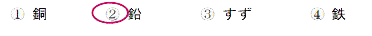 ① 銅 ② 鉛 ③ すず ④ 鉄